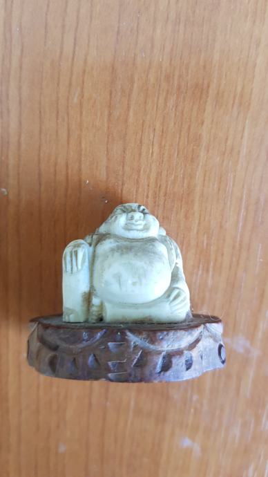 Prodam manjši kipec Bude iz kosti na lesenem podstavku star.
