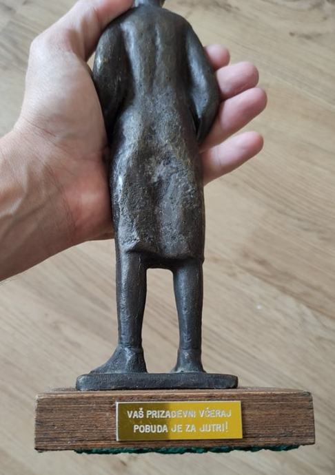 Kip je v dar dobila dolgoletna delavka Tobačne tovarne v Ljubljani leta 1977. Na kipu je zapis: "Vaš prizadevni včeraj, pobuda je za jutri."