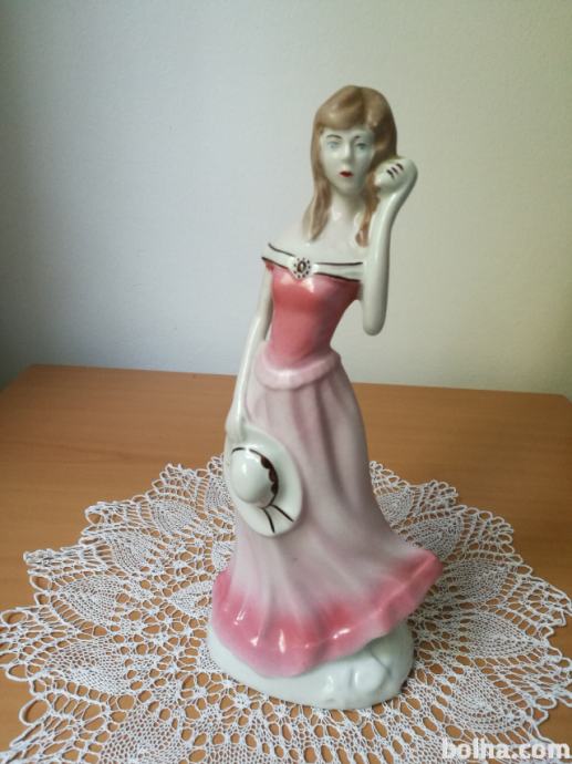 Prodam staro porcelanasto figuro gospodične, ki ima k ušesu prislonjeno školjko ter posluša njen odmev. V sedanjem času bi rekli, da posluša telefon. Kipec je visok 25 cm, lepo poslikan v roza zlatih odtenkih ter dovršeno oblikovan. Je ročni izdelek mojstra jugoslovanske porcelanske tovarne Boris Kidrič. Tel. 040 559 560.