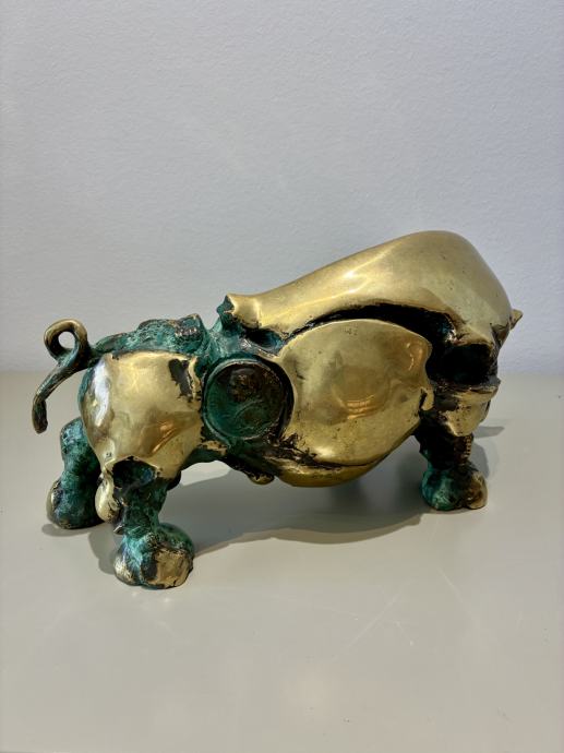 Izjemen bronasti kip Janeza Boljke, nosorog. Dožina 35cm, višina 18cm.
