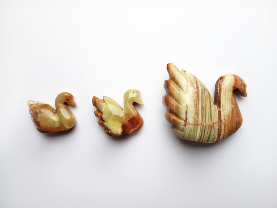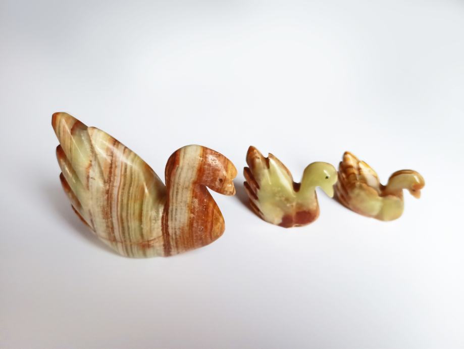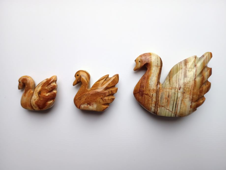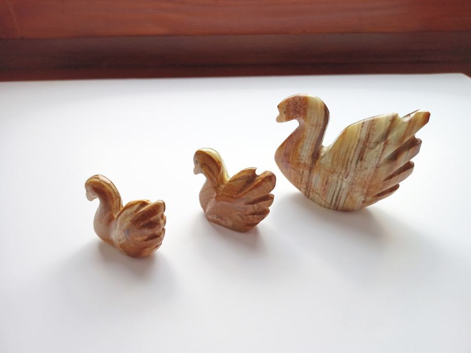 Prodam tri kamnite kipce družine labodov. Kot dekoracija mi ne ustrezajo več, so pa v dobrem stanju, kot novi. Največji je visok pribl. 8 cm.