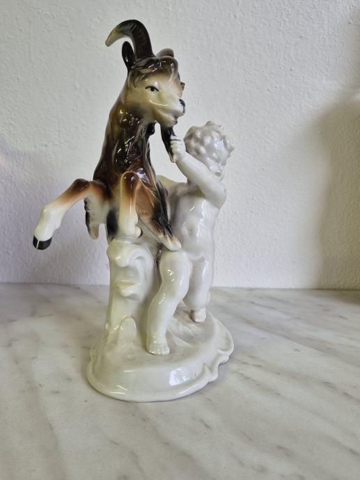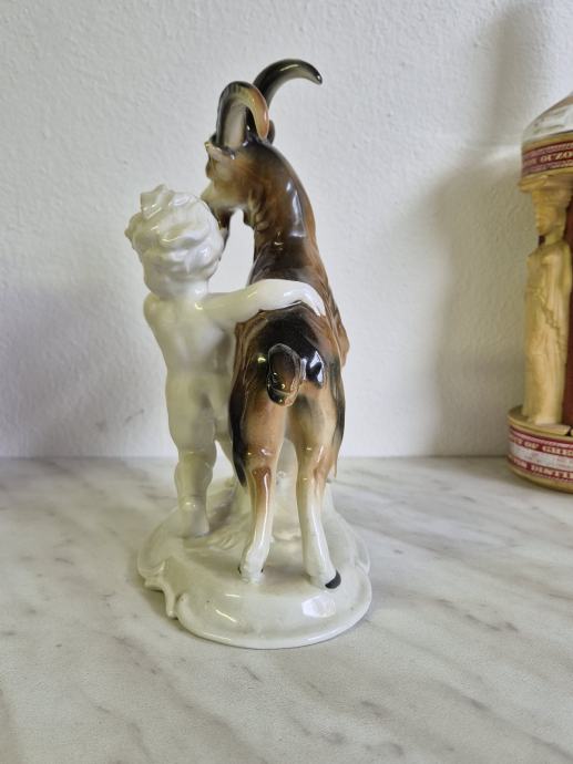Zaradi pomanjkanja prostora iz osebne kolekcije prodam čudovit keramični kipec fantka s kozličkom