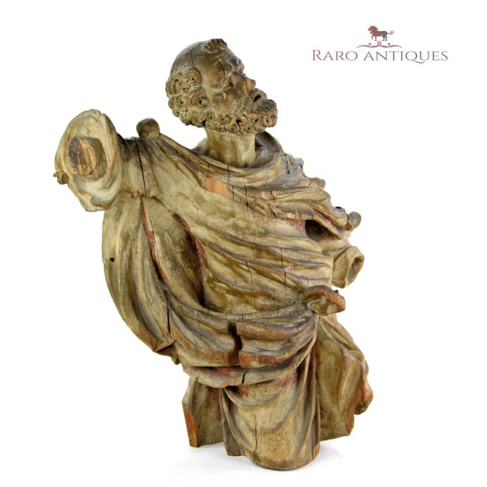 Ta sakralna skulptura sv. Andreja, je edinstven kos preteklosti in redka priložnost, da lahko tak kos umestimo v svoja življenja. Izdelan je iz lesa in dobro vidno je da je rezljanje opravil vrhunski mojster svoje obrti. Poteze so natančno izrezljane, izkušenost umetnika pa se predvsem vidi v podrobnostih, kot so zobje in lasje. Kip svetnika je bil po vsej verjetnosti del večje skulpture, skulpture, ki je vsebovala še več svetnikov ali drugih nabožnih podob in je sestavljala del oltarja. Prepričani smo, da bo ta kos navdušil vse, saj skupaj združuje zgodovino, umetnost in vrhunskost mojstra, ki ga je izdelal.