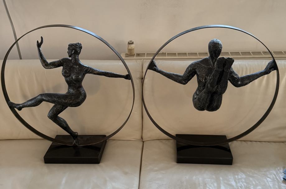 Prodamo dva večja kipa - en je telovadec, drug je balerina. Premer obeh je cca 60 cm in višina 65 cm. Prodamo v kompletu za 120 eur oz. posamezno za 70 eur po kom. Kipa sta kovinska in stojita na marmornem podstavku. Ogled in prevzem v Ljubljani. Za več informacij pokličite na 068/142-918.