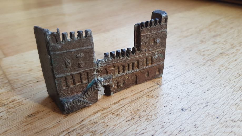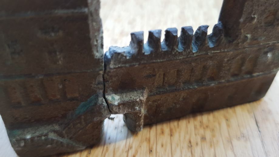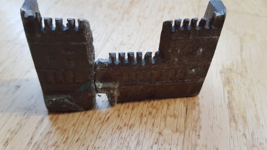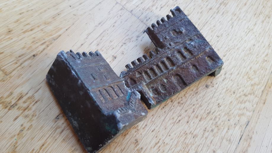 Verjetno bron. Je pa iz dveh delov ker je bil ze od nekdaj pocen. Starina iz 60 let.