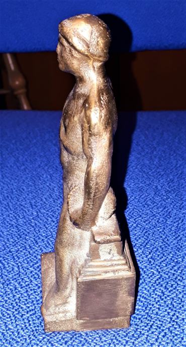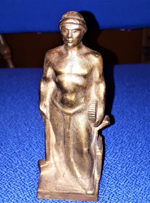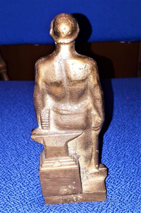 Prodam težak medeninast kipec socialističnega delavca, kovinarja (višina 16cm), kot je viden na fotografijah.