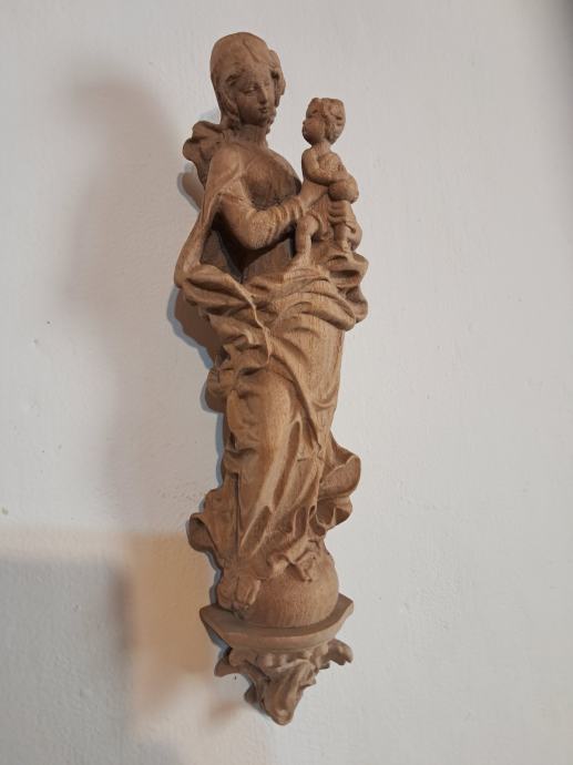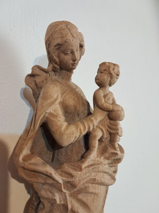 Naprodaj stenki lesen rezbarjen kip Marije višine 30cm..cena 75€ Radovljica inf.051-252-690
