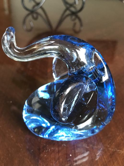 Prodam okrasnega modrega slončka narejenega iz muranskega stekla. Dolg je 7 cm in visok 8 centimetrov.
