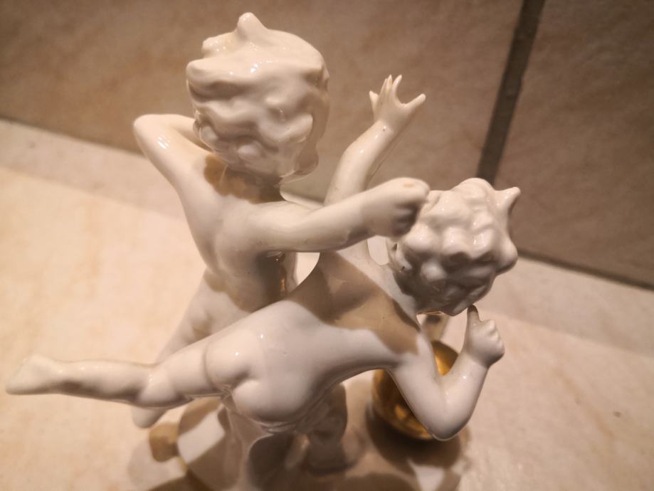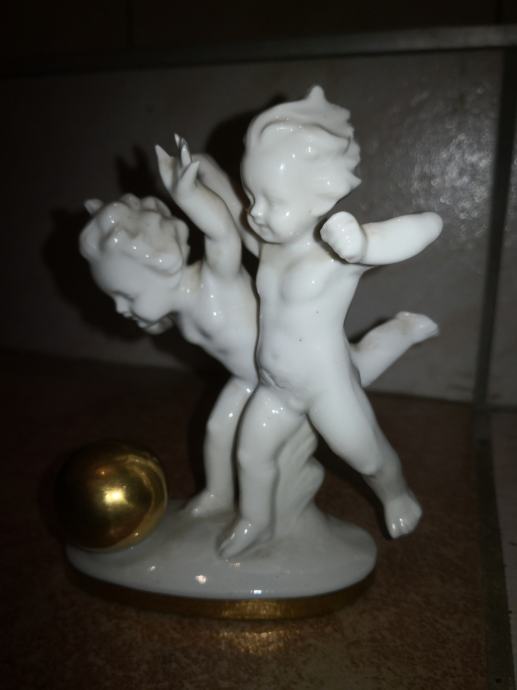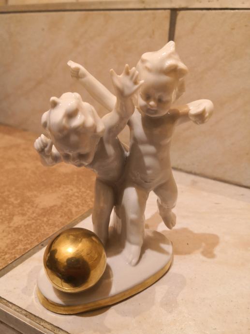 Prodaja se porcelanast kip dečko z žogo, vintage kipec, taka cena ker je mali prst okrušen a je vseeno lepa dekoracija na polici, za zbiratelje,,,,