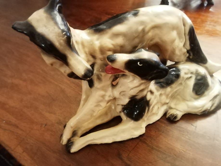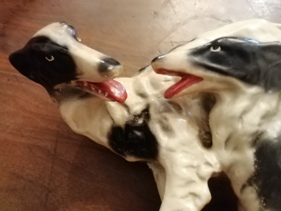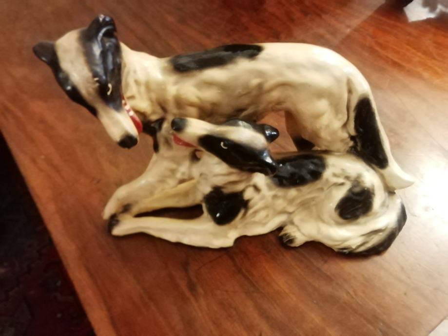 SKULPTURA, stara, hrta, iz gline, ročno poslikana, lepo ohranjena, dim.30×21cm,prodam.tel.070/271-607.