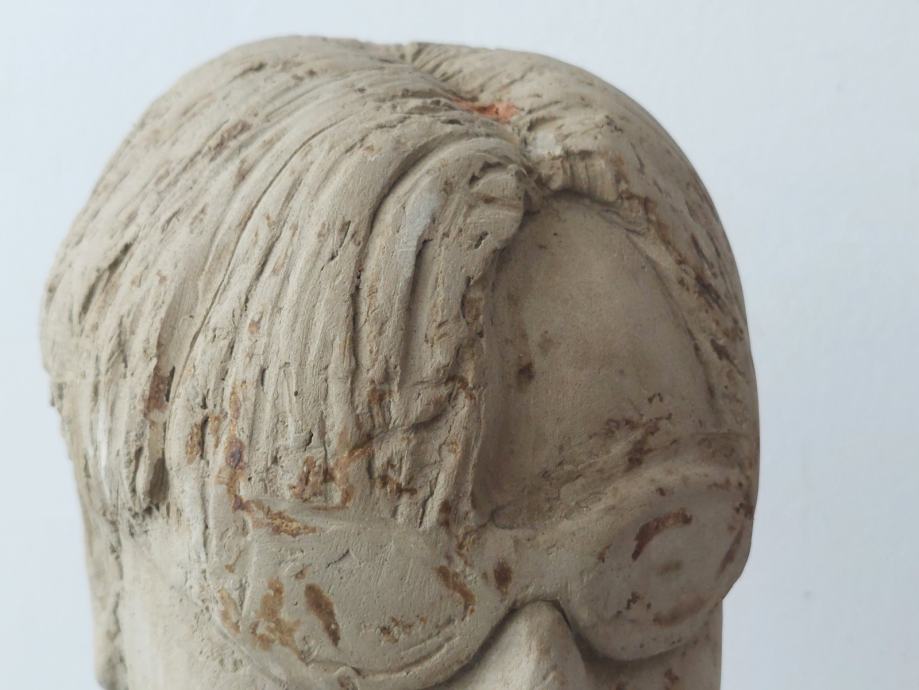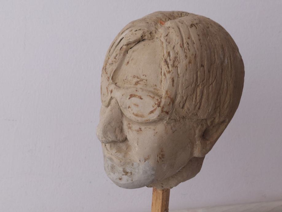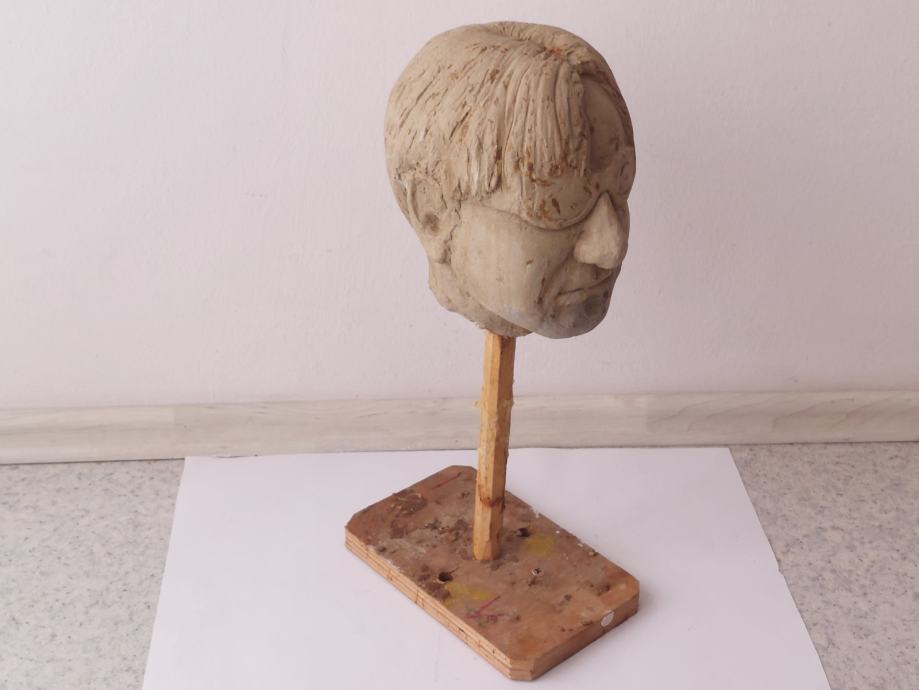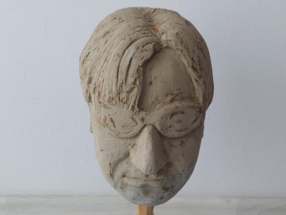 Prodam umetniški kip glave človeka z očali.Kip je ročno,umetniško narejen iz gline.