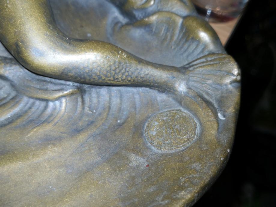 Prodaja se stara skulptura odlitek morske deklice, pladenj posoda za ključe,gola ženska, secesija, secesijske pladenj,,težki odlitek, umetna masa,