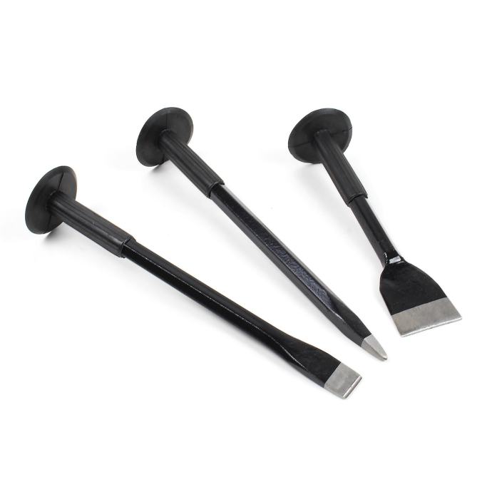 S tem kompletom dobite tri različna ročna dleta XPOtool. Ti vključujejo koničasto dleto, ploščato dleto in široko dleto, ki vam nudijo orodja, ki jih potrebujete za opravljanje različnih del. Za varno delo imajo dleta zaščito pred udarci na ročaju s premerom cca 73 mm. Poleg tega nedrseča gumijasta prevleka zagotavlja boljše rokovanje z dletom.