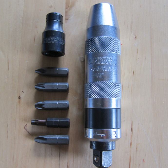 Prodam dobro ohranjen udarni vijačnik Unior s priloženimi nastavki Gedore in Hazet. Orodje je malo rabljeno, brez poškodb in primerno tako za domače mojstre kot za profesionalno rabo. Ogled je mogoč v Lenartu. Cena je fiksna.