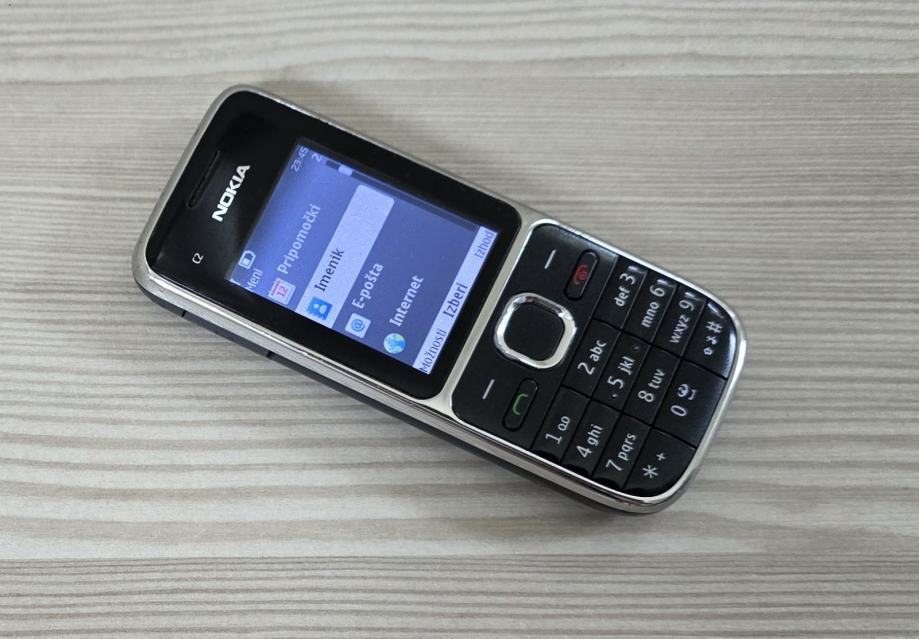 Klasičen mobilni telefon Nokia C2-01, odlično ohranjen in brezhibno delujoč. Telefon ima še zelo dobro baterijo.