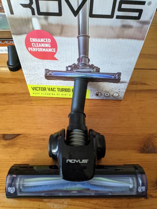 Kupljen je bil decembra 2020. Je v originalni škatli z vsemi dodatnimi nastavi za sesanje (5 različnih nastavkov) in z navodilami za uporabo. Zraven se doda tudi turbo krtača, ki je odlična za preproge in odstranjevanje pasje ali mačje dlake.