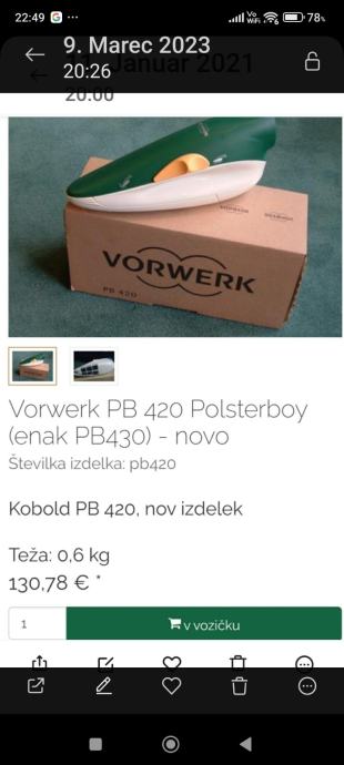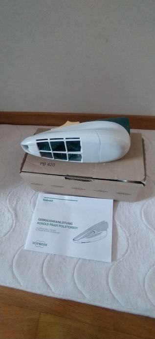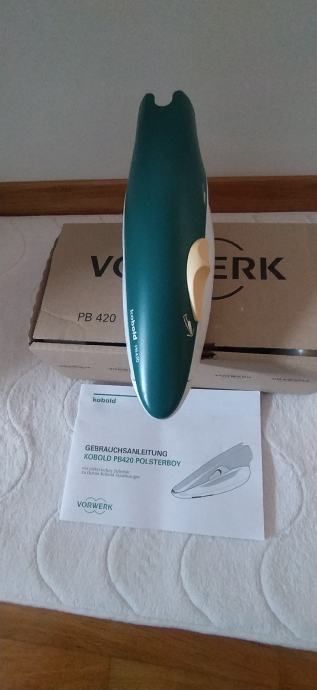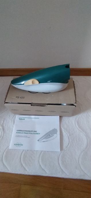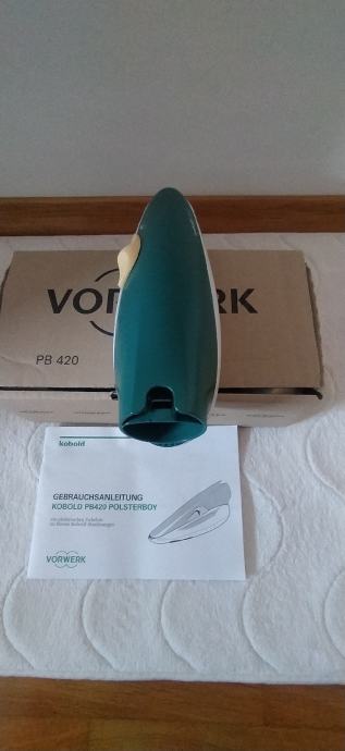 Prodam VORWERK POLSTERBOY PB 420,NOV odlično ohranjen.CENA je 45€,z elektricno gibljivo cevjo je CENA 80€.Polsterboy je namenjen za čiščenje in sesanje vseh vrst tekstilnih oblog, predvsem sedežnih garnitur, avtomobilskih sedežev itd. Vibracijska ščetka, ki jo poganja v POLSTERBOY vgrajeni motor, stepa in krtači tekstilno površino. Prah in umazanijo, ki se pri tem dviguje, posesa sesalec, na katerega je polsterboy priključen z gibljivo cevjo. Zelo prakticen je za sesanje dlak od domacih zivali.Primeren je za vec modelov sesalcev Vorwerk VK 130,131,135,136,140,150 in najnovejsi VK 200.Vec informacij po tel.070898825.