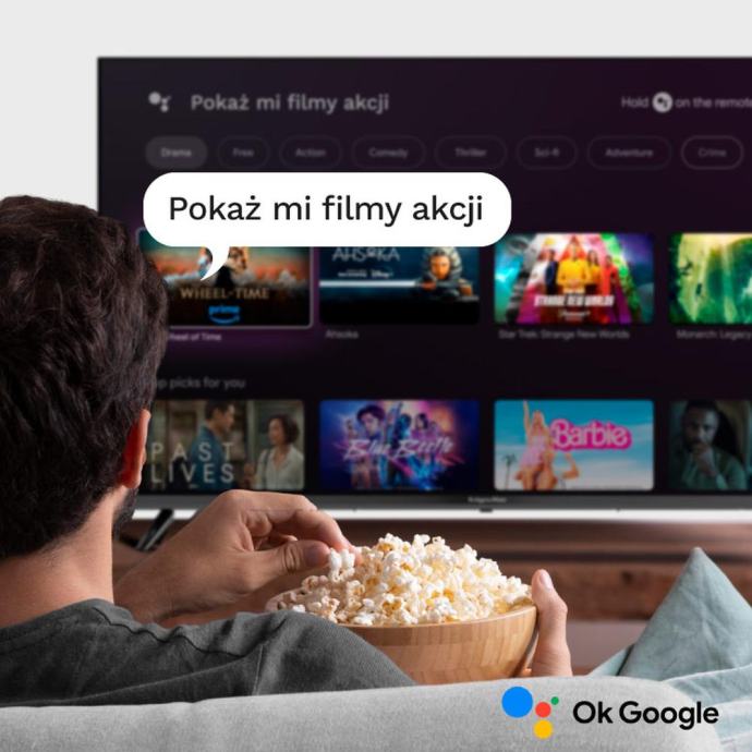 Televizor Kruger&Matz KM0243FHD-SA bo postal vaš vodnik pri iskanju prave vsebine. Pritisnite gumb za glasovno iskanje na daljinskem upravljalniku in postavite vprašanje ali zahtevajte film, ki si ga želite ogledati, in odgovore boste prejeli neposredno na zaslonu.