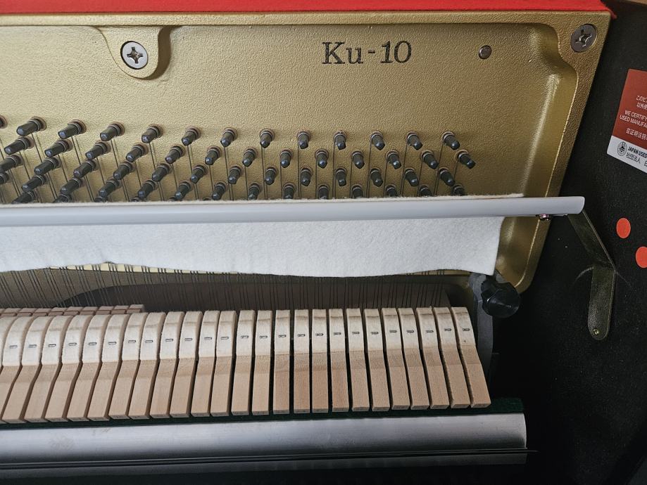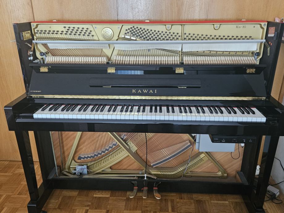 Prodam pianino KAWAI-KU10 z anytime X funkcijo (omogoča igranje na slušalke preko digitalnega vmesnika). Letnik izdelave 1998, obnovljen; z JUPA certifikatom (l. 2020), kupljen leta 2021 v Japan piano centru. Leta 2023 je bilo na mehaniki v celoti zamenjano usnje. Letno servisiran in uglašen. Višina 121 cm.