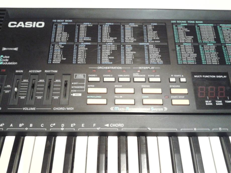 Klaviatura (5 oktav) je odlično ohranjena. Ima 220 odličnih zvokov ( med drugim odlična pihala, dodani so tudi razni zvočni efekti itd...), 110 izrednih ritmov (odličen zvok bobnov) in osupljiva avtomatska spremljava (od klasike, popa, rocka do jazza in funka).