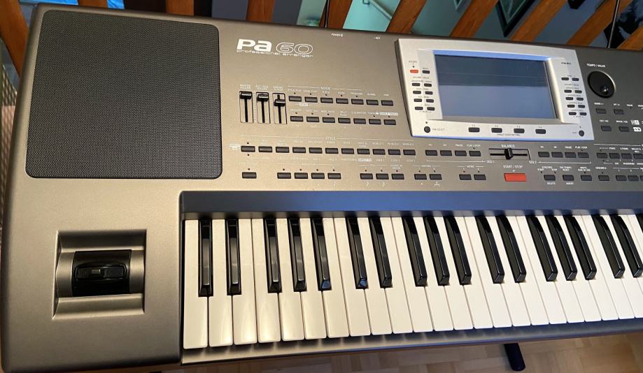 KORG Pa 60 je profesionalni sintetizator, ki ima odlično kvaliteto zvoka in nudi številne možnosti, kot so aranžiranje, samostojno kreiranje ritmov itd. S preko sto ritmov nudi tudi veliko razlićnih zvokov in zvočnih efektov ter je odličen tako za studijsko kot tudi scensko uporabo. Sintetizator je bil relativno malo uporabljan. Vedno je bil izključno v nekadilskih prostorih. Je zelo dobro ohranjen, vse funkcije delujejo...