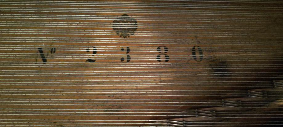 Klavir je dolg 230 cm in ima čudovite detajle, tipke iz slonovine, zlati emblem zgodovinskega podjetja,