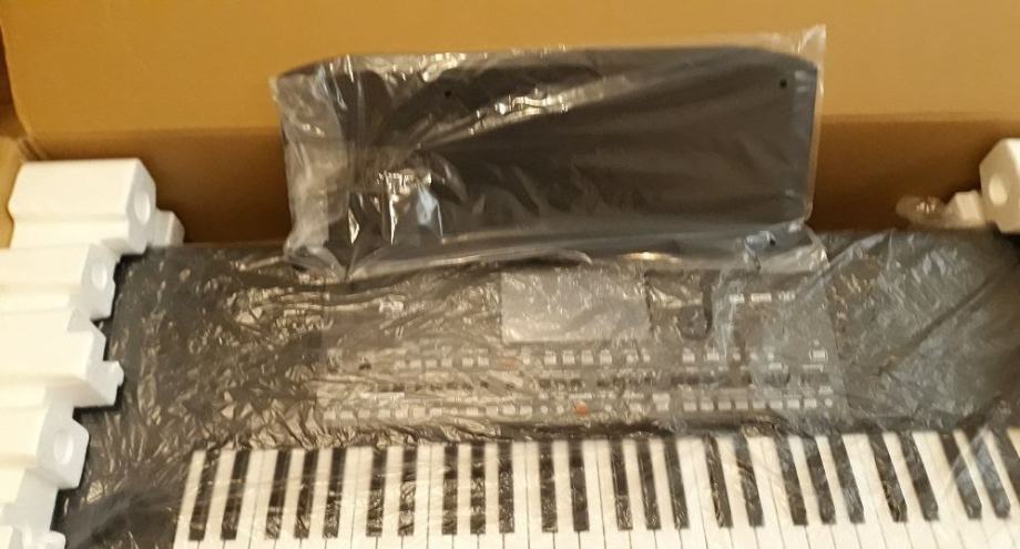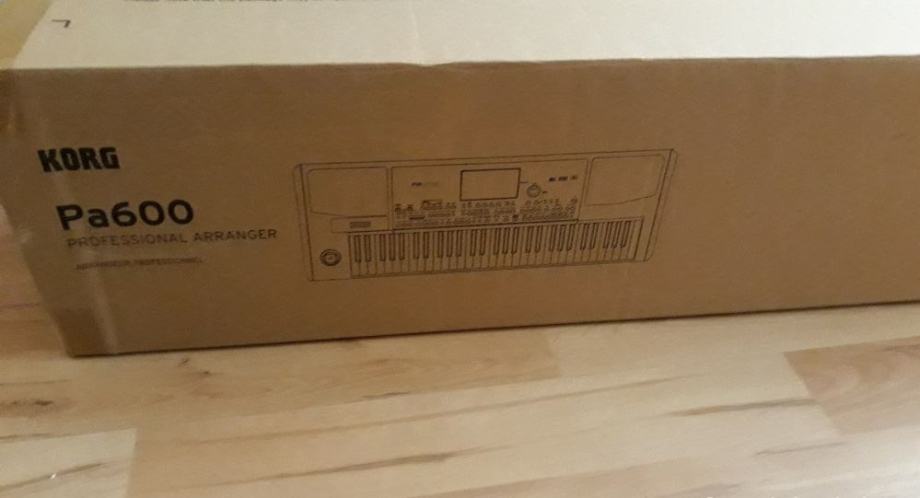 Korg Pa 600, nov, kupljen pred 6 meseci, 3 leta garancije + kasko zavarovanje. Vzet iz škatle, preizkušen in pospravljen nazaj v škatlo. Priložena sta klaviatura, notno stojalo in napajalni kabel. . . , vzorci, ritmi, mp3, midi za vse vrste glasbe.