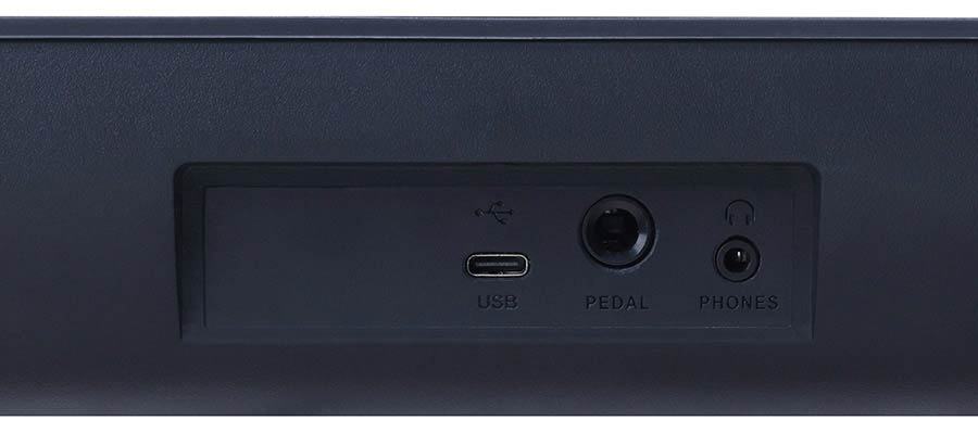 Povezeve: 1 x USB-C (MIDI & Audio), Izhod za slušalke (1 x 1/8”), Pedal (sustain)