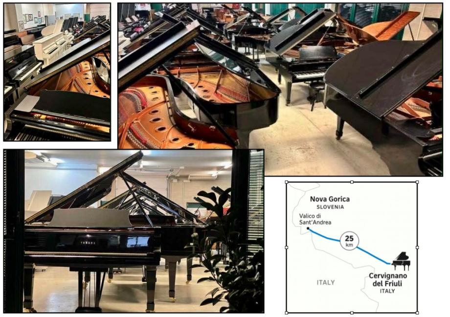 Salon Klavirjev se nahaja 25 KM vožnje od mejnega prehoda Nova Gorica.