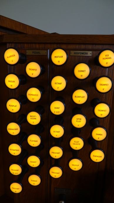 Pedalna klaviatura je 30 tonska (C-f), konkavna.