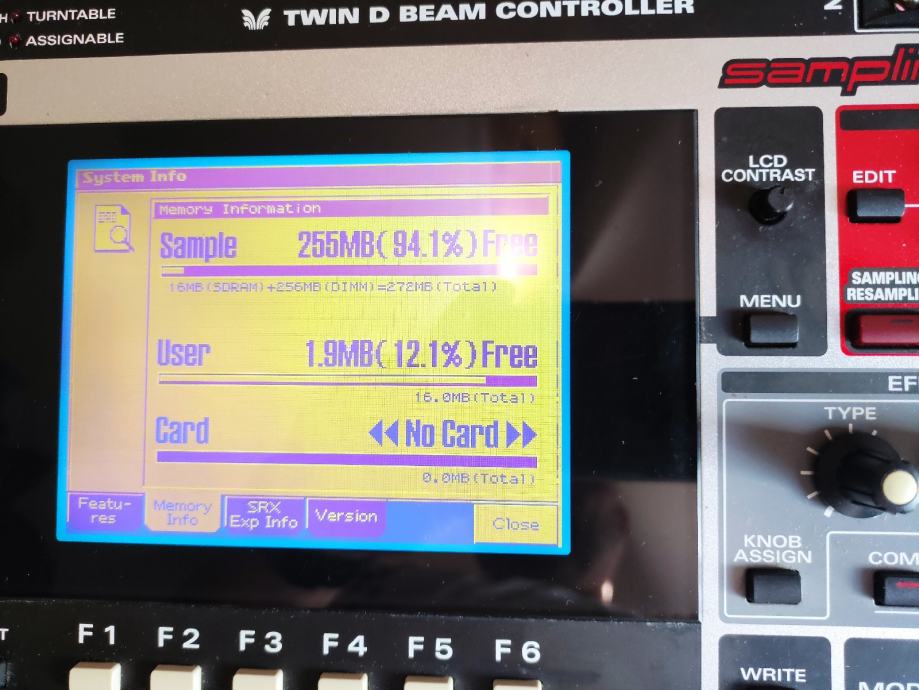 256 MB RAM za sample, 64 glasna polifonija, gumbi in sliderji za editiranje zvokov, 8 sliderjev za mikser, dinamični padi...