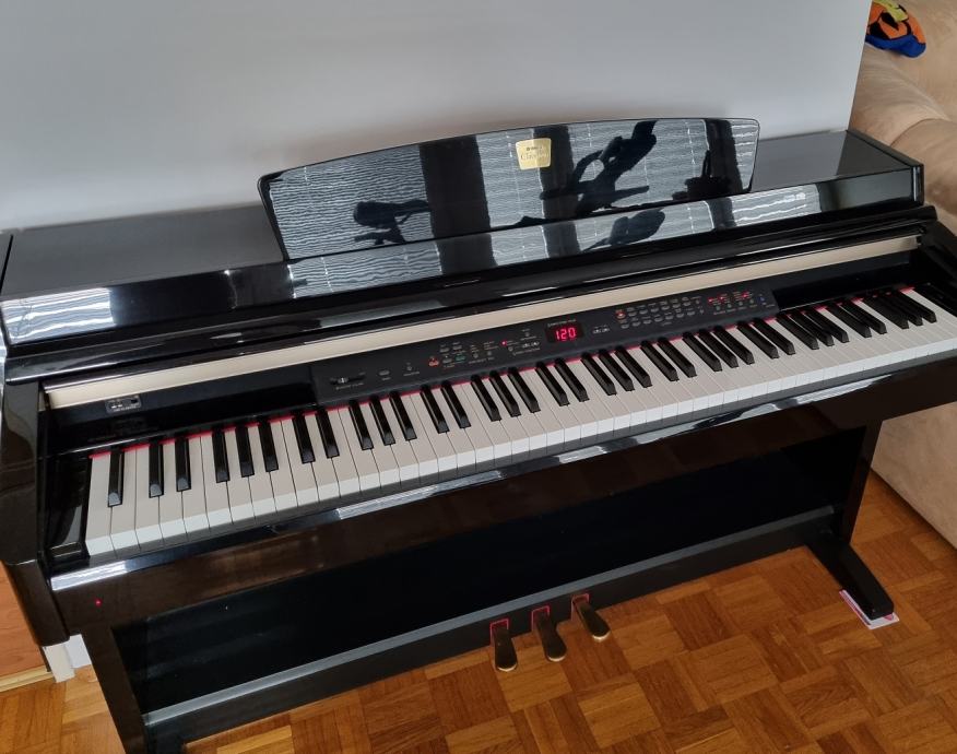 Električni klavir Yamaha Clavinova CLP-240, kupljen septembra 2007 v trgovini Hartman v MB. Ima "obtežene" tipke ter je solidno ohranjen.