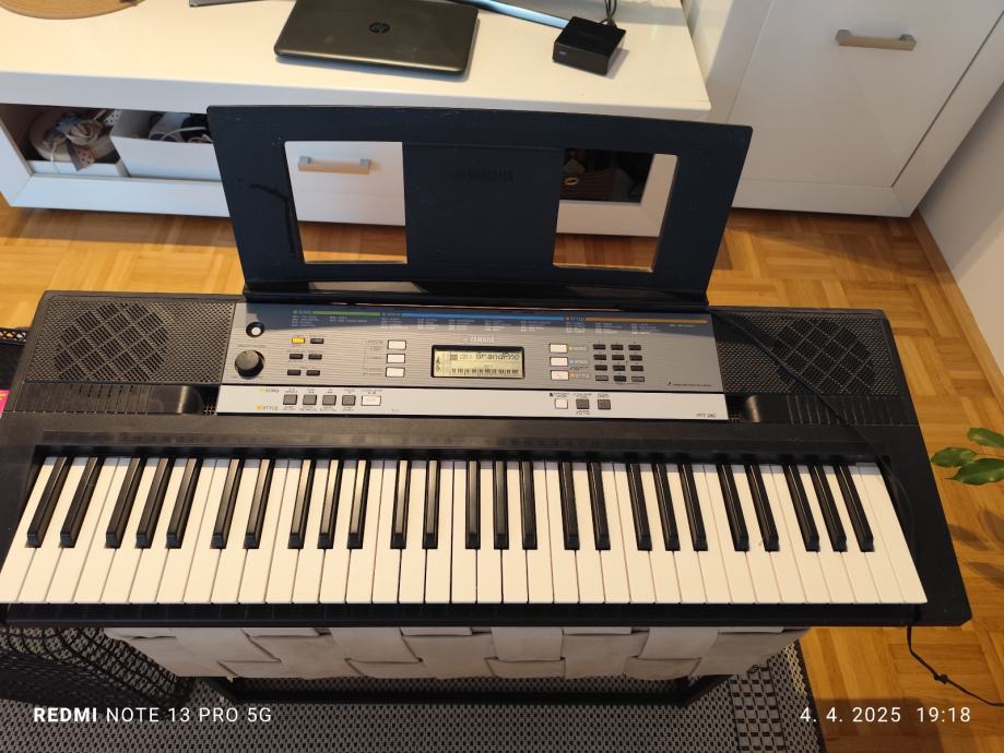 Yamaha ypt240 Piano deluje brezhibno, ima dva zelo kvalitetna in glasna zvočnika, zelo dosti različnih modifikacij,funkcij odličen za vse ki ste v glasbenem hobiju. Prodajam pa zaradi pomanjkanje časa in nikoli nisem ga znal nekaj dobro igrati.