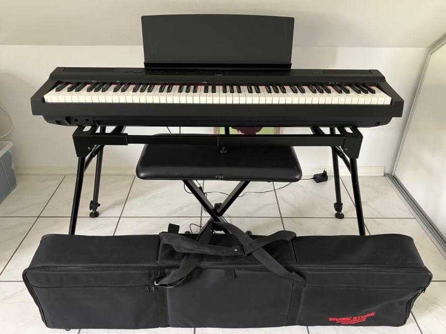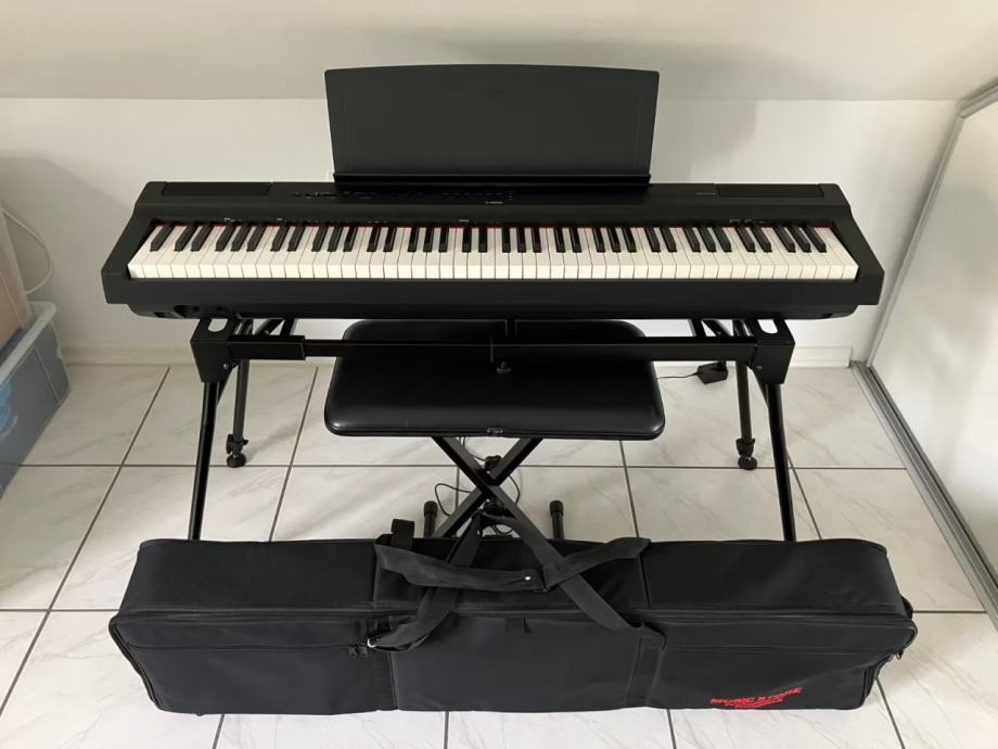 Prodam svoj Yamaha P 125B – praktično nov, igral sem ga le dvakrat doma. Zvok in občutek sta fantastična, vendar ga preprosto ne uporabljam dovolj pogosto. Cena vključuje celoten komplet, kot je prikazano na sliki: Yamahin odrski klavir, originalni pedal, trdno stojalo in ujemajoča se klavirska klop.
