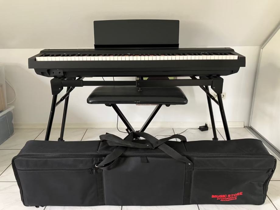 Prodam svoj Yamaha P 125B – praktično nov, igral sem ga le dvakrat doma. Zvok in občutek sta fantastična, vendar ga preprosto ne uporabljam dovolj pogosto. Cena vključuje celoten komplet, kot je prikazano na sliki: Yamahin odrski klavir, originalni pedal, trdno stojalo in ujemajoča se klavirska klop.