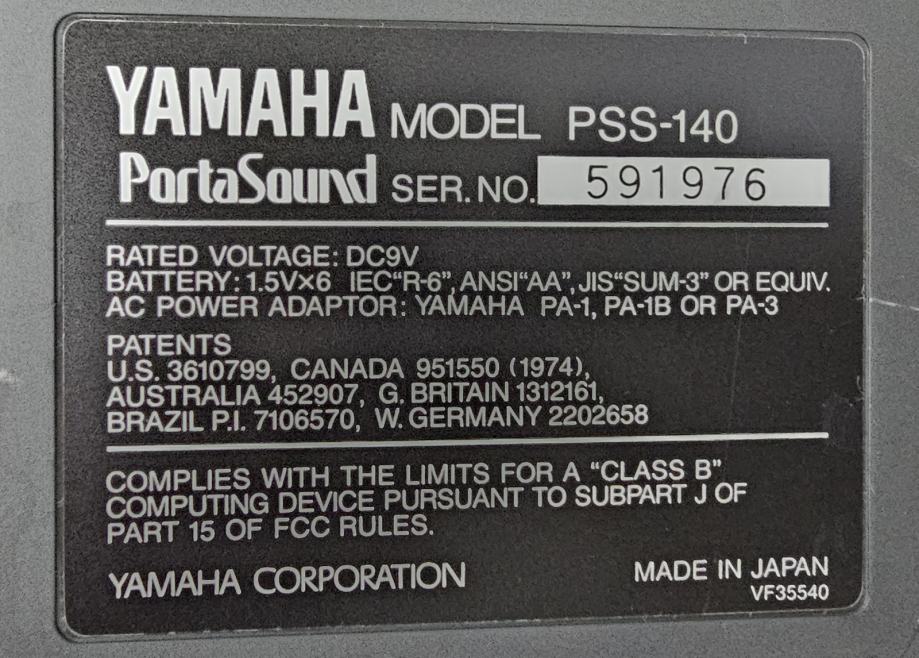 Yamaha PSS-140 portasound sintetizator V delujočem stanju Brez napak