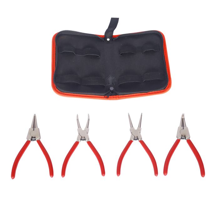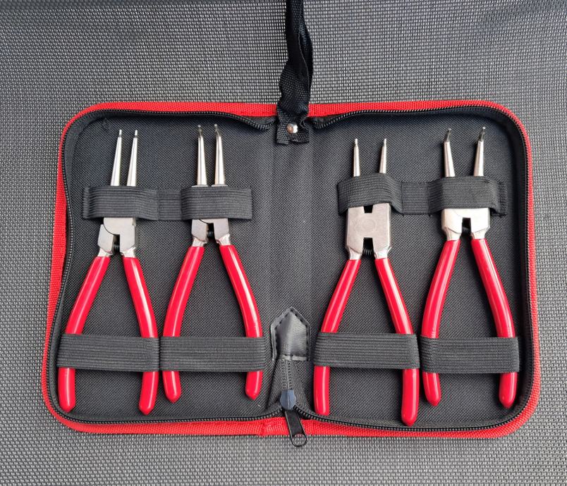 Zaradi ozkih podaljškov na koncu čeljusti lahko varno zgrabite celo namaščene ali naoljene zaskočne obroče ali zaklepne obroče. Robustne klešče so izdelane iz ogljikovega jekla in so primerne za visoke sile. Nedrseči ročaji so prekriti s PVC-jem in omogočajo varen oprijem.