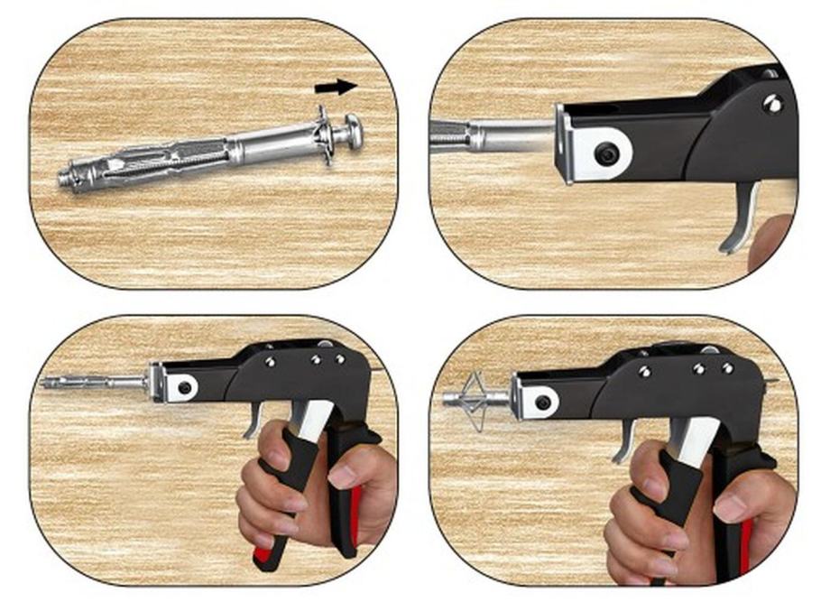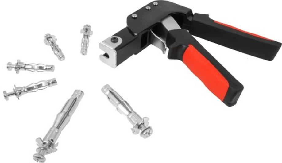 Stiskalnik čepov molly je orodje, zasnovano za hitro, ponovljivo stiskanje čepov, nameščenih v suhomontažne ali votle materiale. Z njimi lahko na mavčne plošče pritrdimo lahke elemente, kot so obešalniki, slike, police, svečniki itd. Z kleščem odpade zamudno delo z izvijačem, popolno vpenjanje zatiča traja nekaj sekund.