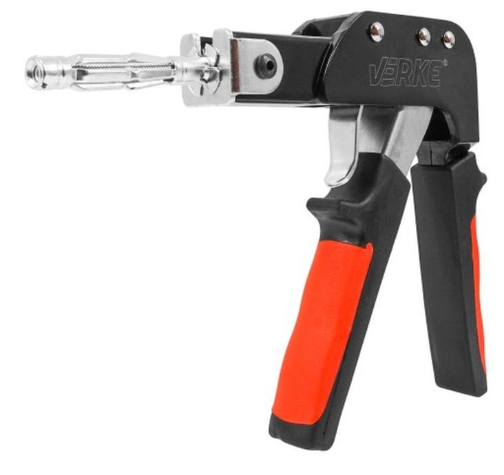 Postavite zatič v izvrtano luknjo, glavo vijaka, ki štrli iz nje, postavite v sprednjo vtičnico stiskalnice in trdno stisnite roke orodja. Izvlečeni vijak bo zategnil zatič in ga razširil na “zadnjo” stran plošče.