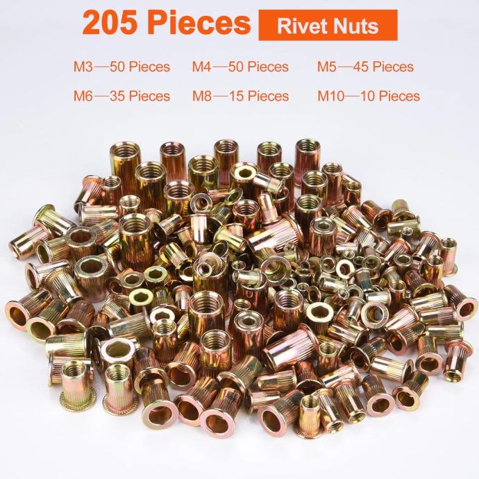 Matice za prešanje v 6 velikostih, trni za kovičenje navojnih matic