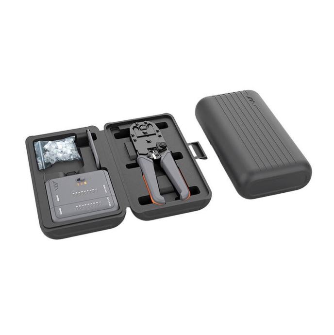 S tem setom orodij boste imeli vse, kar potrebujete za enostavno in učinkovito delo z mrežno opremo. Klešče so izdelane iz kakovostnih materialov in so zasnovane za nevanje mrežnih kablov. UTP tester pa vam omogoča preverjanje povezljivosti in delovanja mrežnih kablov. Pred uporabo klešč preverite, ali so primerno ostri in čisti, pred uporabo UTP testerja pa preverite, ali je baterija napolnjena.