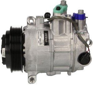 Kompresor klime - Mercedes-Benz Razred E. Letnik: 09-16. Lastnosti: za proizvajalce DENSO, ID- kompresorja 6SEU16C, Premer Jermenica 110 mm, Delovna prostornina kompresorja 170 cm?, Obratovalna napetost 12 V, Premer vstopa/dovoda 28,4 mm, Izpust 12,9 mm, Kolicina poln. olja 150 ml, Olje kompresorja PAG 46, Stevilo zlebov 6, Hladilno sredstvo R 134a, 2 -polen.