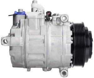 Kompresor klime - Mercedes-Benz Razred S. Letnik: 05-13. Lastnosti: za proizvajalce Denso, ID- kompresorja 7SEU17C, Stevilo reber 6, Hladilno sredstvo R 134a, Olje kompresorja PAG 46, Nazivna napetost 12 V, s jermenico za rebrasti jermen, Premer Jermenica 110 mm.