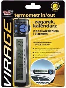 Termometer za merjenje temperature v ali zunaj avtomobila. Digitalni. Deluje na baterije, ki so priložene. Montaža: z dvostranskim lepilnim trakom.