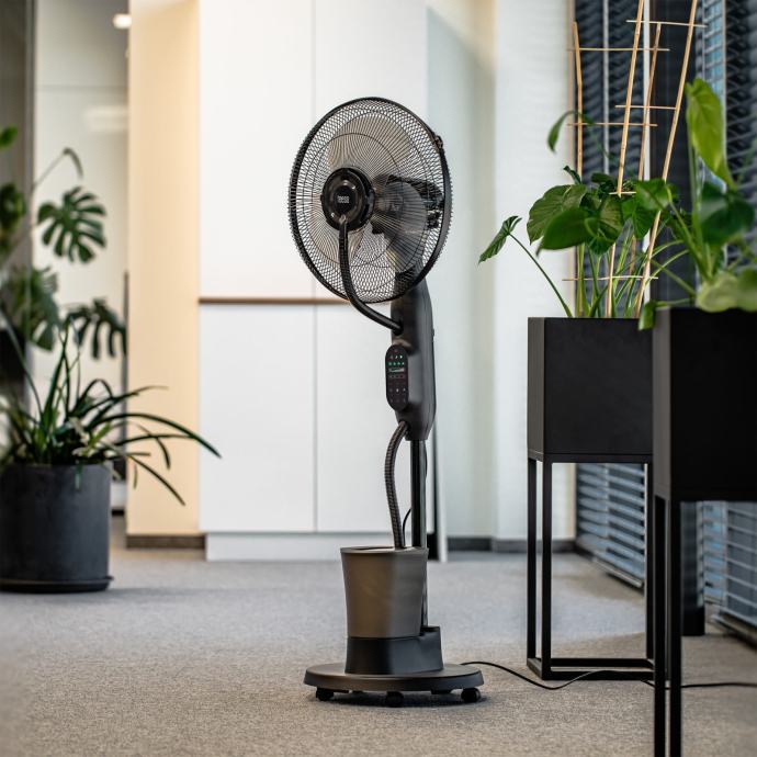 Močna vročina lahko močno pokvari udobje v vašem domu in pisarni. Stoječi ventilator Teesa s funkcijo rosenja je odlična rešitev za vroče dni. S kombinacijo učinkovitega kroženja zraka z vlažilno meglico učinkovito zniža temperaturo okolja in izboljša počutje.