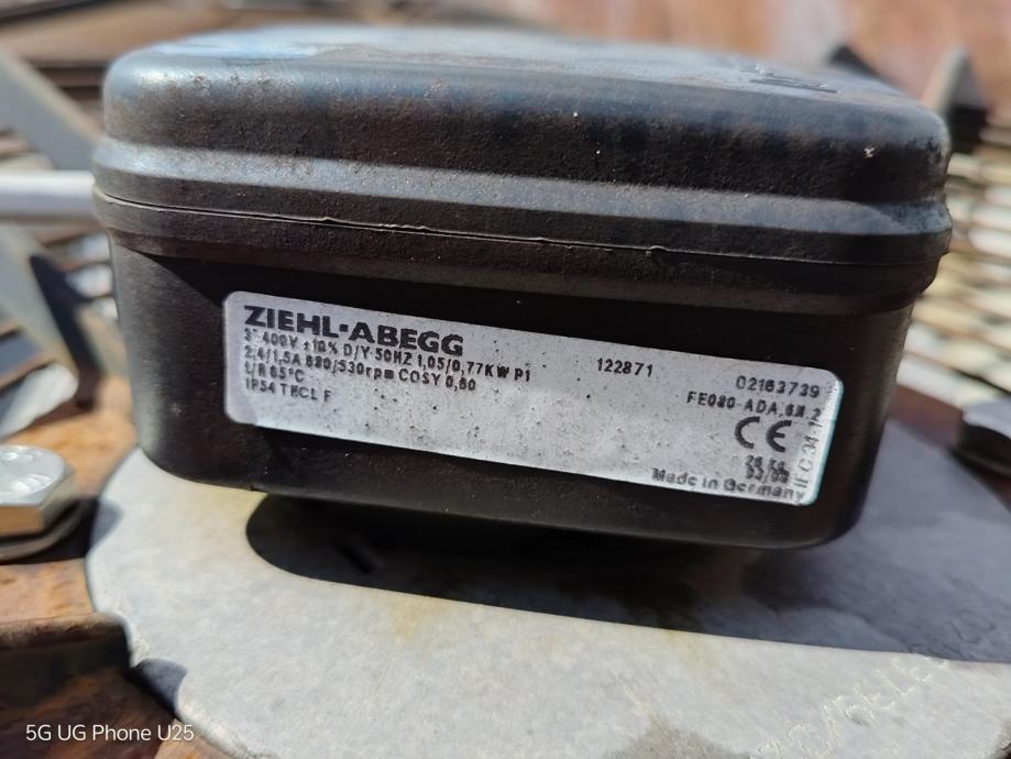 Prodam zelo močen ventilator premera 80cm, komplet z montažnimi nosilci in zaščito, priključna napetost 380V, lopatice so iz aluminija, je odporen na vlago, lahko je izpostavljen padavinam.