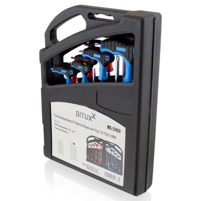 Ta 16-delni set torx in inbus T-ključev je odlična izbira za vse, ki iščejo kakovostno orodje za svojo delavnico ali domačo delavnico. Set vključuje 8 torx ključev in 8 inbus ključev, ki so izdelani iz trpežnega krom-vanadijevega jekla in so odporni na obrabo in korozijo. Ključi so različnih velikosti, kar omogoča uporabo za različne namene. Set je shranjen v priročnem kovčku, ki omogoča enostavno shranjevanje in prenašanje. Ta izdelek je primeren za uporabo v različnih okoljih, od delavnic do domačih delavnic, in bo zagotovo izboljšal vašo produktivnost in natančnost pri delu.