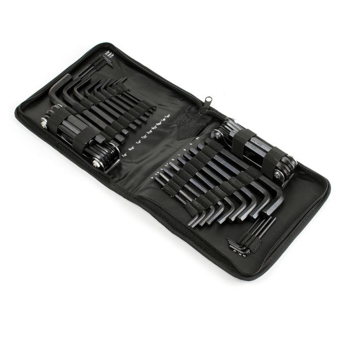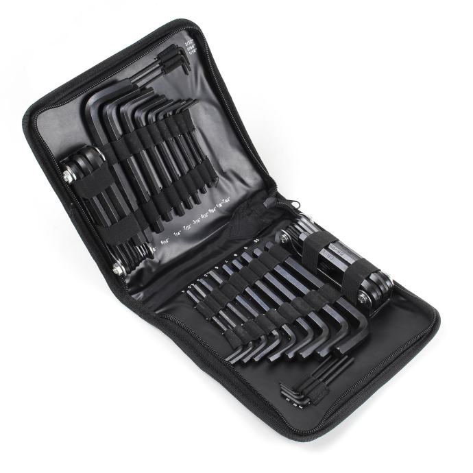 Poleg tega sta priložena dva kompleta zložljivih imbus ključev. Nahajajo se na dveh kompaktnih vodilih in jih je mogoče po potrebi razklopiti in po uporabi ponovno zložiti.