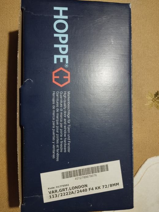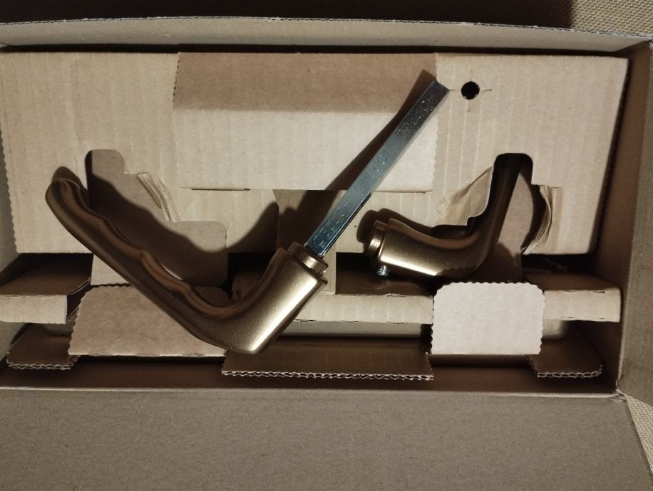 Nova, nikoli rabljena kljuka Hoppe v zlati barvi.