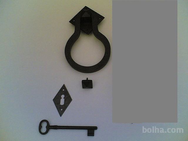 Tolkalo, scitnik in kljuc za vhodna vrata rustik - kovano zelezo (zasciteno),cena je komplet kot na sliki